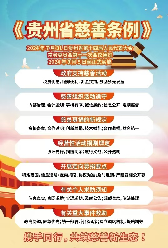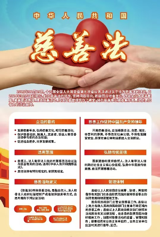 线下:截止到2024年9月11日,在兴义市、义龙新区各乡镇(街道)、各村共发放张贴《中华人民共和办慈善法》宣传海报200余份,《贵州省慈善条例》宣传海报350余份,慈善法规宣传册100余份。